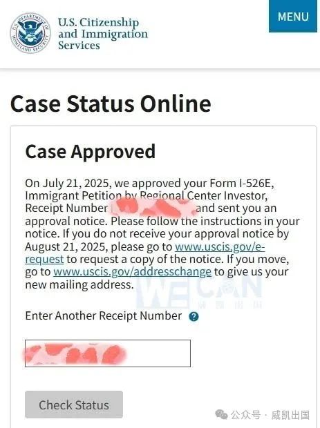 今早,威凯出国的办公室里又传来振奋人心的捷报! 我们又有一位EB5双递投资人,其EB-5投资移民申请的核心环节——I-526E,在递交后仅用了短短6个月就获批了! 这不仅刷新了我们的服务记录,更是新政下“双递交”策略高效性的有力证明!威凯移民团队牛啊牛啊! 时间线梳理: ✅2025年1月:递交I-526E/485/131/765申请 ✅2025年4月:工卡和回美纸获批 ✅2025年7月:I-526E获批。 选的是乡村预留签证项目(当前仍无排期) 客户无需面试,静待485绿卡到手